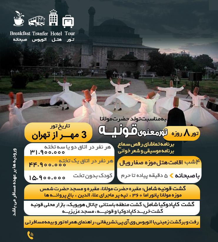 - هزینهها: هزینههای سفر به قونیه بسته به نوع تور و هتل انتخابی متفاوت است.